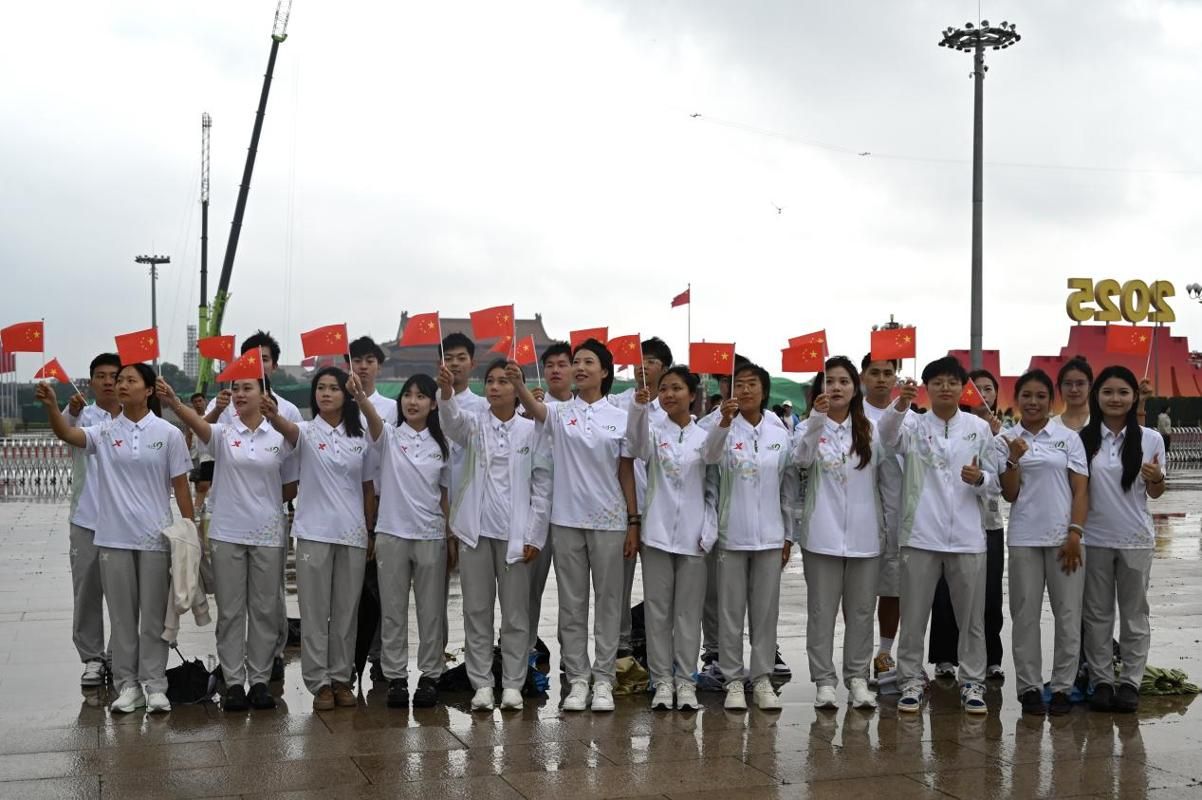 8月27日清晨,北京暴雨如注,却未能阻挡成体青年奔赴天安门广场的步伐。尽管衣衫尽湿、寒风侵骨,同学们仍坚持排队两小时,只为亲身感受天安门城楼的巍峨庄严、人民大会堂的宏伟肃穆和人民英雄纪念碑的崇高敬意。“站在这里,才懂得什么是祖国。”苏承志同学注视着雨幕中的城楼动情地说道。风雨中紧握的拳头与挺直的脊梁,无声地诠释着“强国有我”的青春誓言。